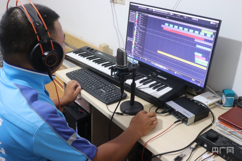龙德元在电脑前制作音乐(央广网发王赢泽摄)