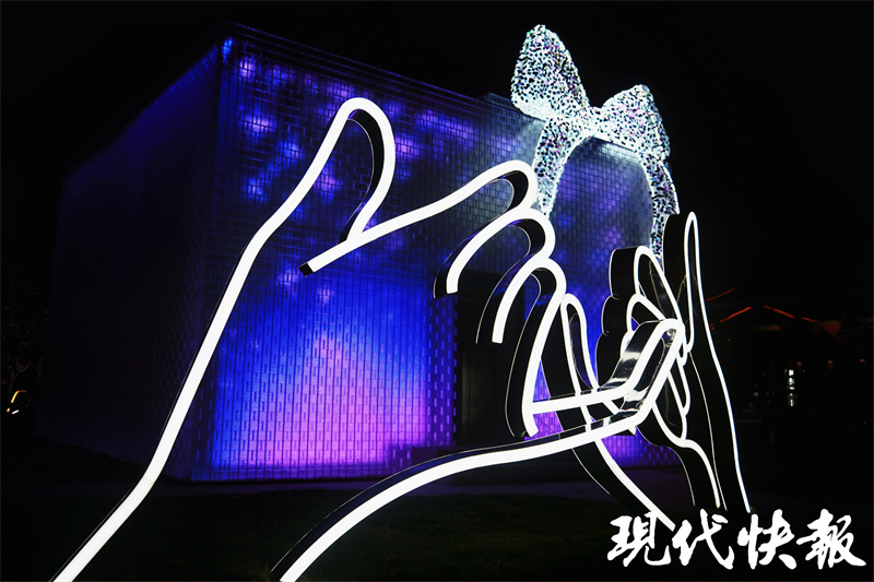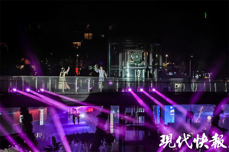 活动在古风民乐合奏《梁祝》中拉开帷幕,悠扬绵长的旋律将大家带回流传千古的爱情故事。明月高悬,金陵STYLE的玻璃栈桥化身“鹊桥”,融合民乐、舞蹈等七夕元素,呈现了一场古风古韵和现代气息互相融合的视听盛宴。在启动仪式上,由金陵STYLE打造的艺术装置“金陵之约”正式亮相,整个装置采用玻璃礼盒造型,灯光亮起时璀璨夺目,成为南京新的浪漫地标,吸引市民和游客合影打卡。