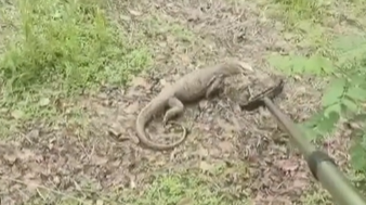 8月11日,大兴区魏善庄镇一市民张先生遛弯时,在一处林地发现了一只巨型蜥蜴,这只蜥蜴有一米长,走得不快,张先生害怕蜥蜴伤人选择了报警,随后蜥蜴被抓住,并联系了大兴区园林绿化局。接到救助电话后,区园林绿化局工作人员携带救助工具于第一时间赶往现场,同时联系北京野生动物园救助站,并由救助站工作人员将其带回实施救助。专家发现这是一只暗影巨蜥。暗影巨蜥,全长可达1.8米,细长的身体是其特点,主要以昆虫、蜘蛛等节肢动物以及蜗牛、小型无脊椎动物为食。暗影巨蜥幼体时,颜色较为鲜艳,底色为黑色,并有星点状黄色斑纹,头部有些个体为金黄色,背部有横向排列的黑色暗纹。成体后,暗影巨蜥的背部暗纹依旧可见,喉部带有花纹。通常情况下,暗影巨蜥的寿命大概在18年左右,但人工饲养另算饲养寿命。