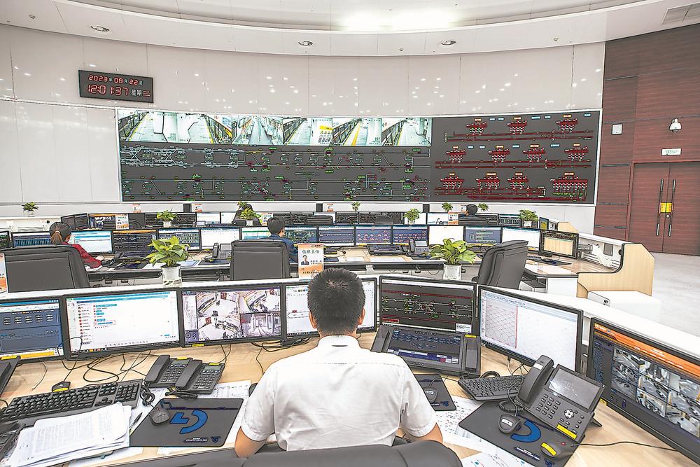 在福州地铁指挥控制中心(OCC),车辆专家系统监控全自动驾驶列车运行情况。