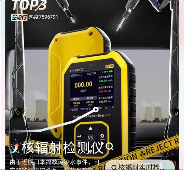 据报道:记者发现,“核辐射检测仪”词条已经登上某宝热搜榜单。