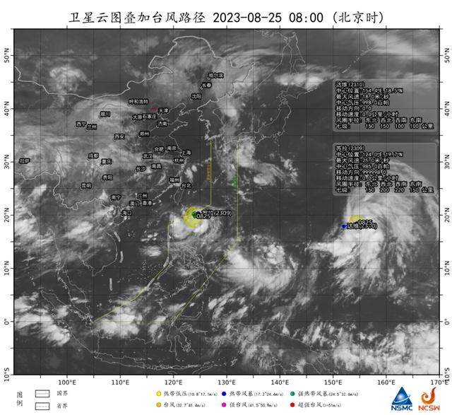 25日8时台风“苏拉”和“达维”卫星云图 来源:国家卫星气象中心
