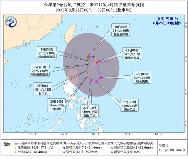 今天8时,台风“苏拉”位于菲律宾马尼拉北偏东方向约650公里。预计,“苏拉”将先在菲律宾吕宋岛东北部洋面徘徊,29日开始向北偏西方向移动,逐渐向台湾东部沿海靠近,最强可达强台风级或超强台风级(45-52米/秒,14-16级)。