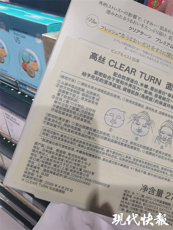 在一家大型高端连锁超市的面膜专区,仍有不少原产地为日本的面膜在货架上售卖,如高丝、肌美精等。当记者询问日本核污染水排海事件对这些品牌的销售影响时,店员表示“不清楚”。