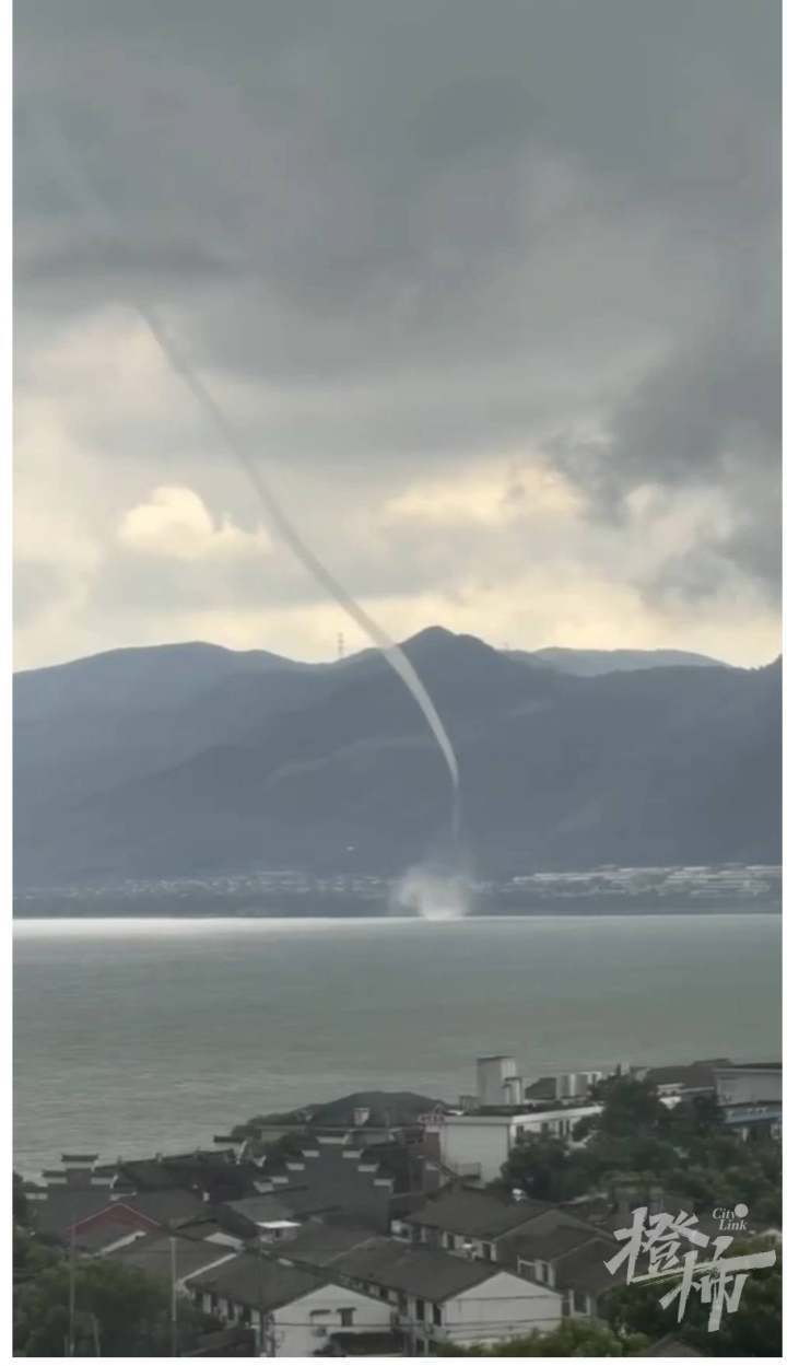说起来,这是因为这属于“水上龙卷风”。水上龙卷风出现的时候,往往是在湖面,甚至是海面上,当冷暖空气相遇,从而导致能量不稳定的时候,就会导致水上龙卷风的出现。在巨大风力的作用下,水面上的水会被向上吸走,从而形成一个看起来非常醒目的水柱,一直到与高空的云层相连接。