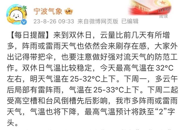 宁波的气温要下降了