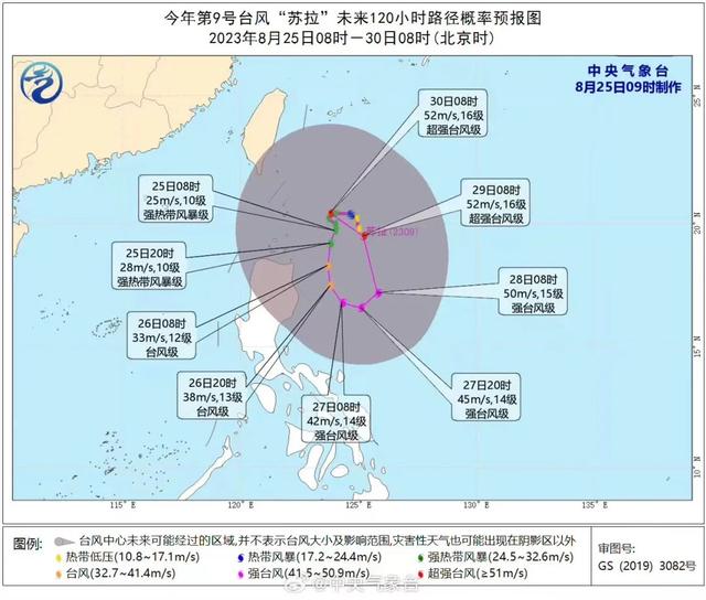 25日中央气象台发布的“苏拉”路径图