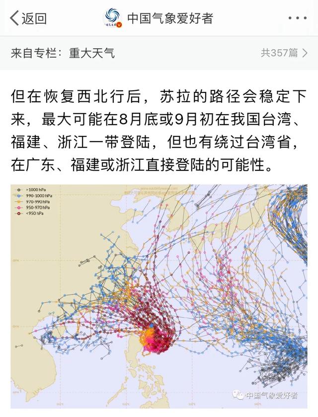 第二,不管登陆哪里,苏拉在8月底或9月初登陆我国的可能性是很大的,因此东南沿海需要密切关注苏拉动向,做好准备。