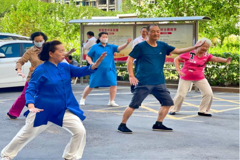 近日,六道湾街道融鑫社区新时代文明实践站组织辖区18余名老人在南湖税苑小区开展“太极进小区全民同健身”活动。