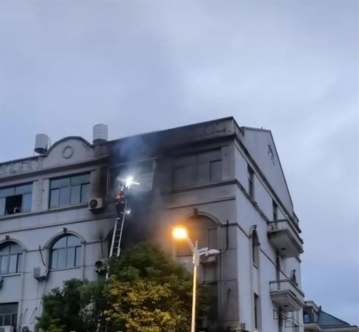 视频显示,夜幕中,一栋四层楼的居民楼,从一楼到四楼都燃起了大火,顶层火势最大。多辆消防车已赶到现场灭火,还有不少人员围观。另一段视频中,天微微亮,火势已经被扑灭,有消防人员正在现场善后。据记者了解,起火地点在台州市路桥区横街镇中心小学附近。