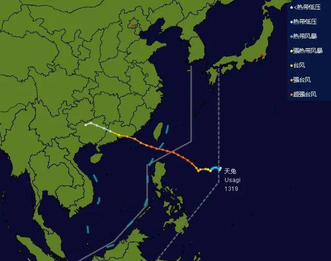 1319号台风“天兔”路径图
