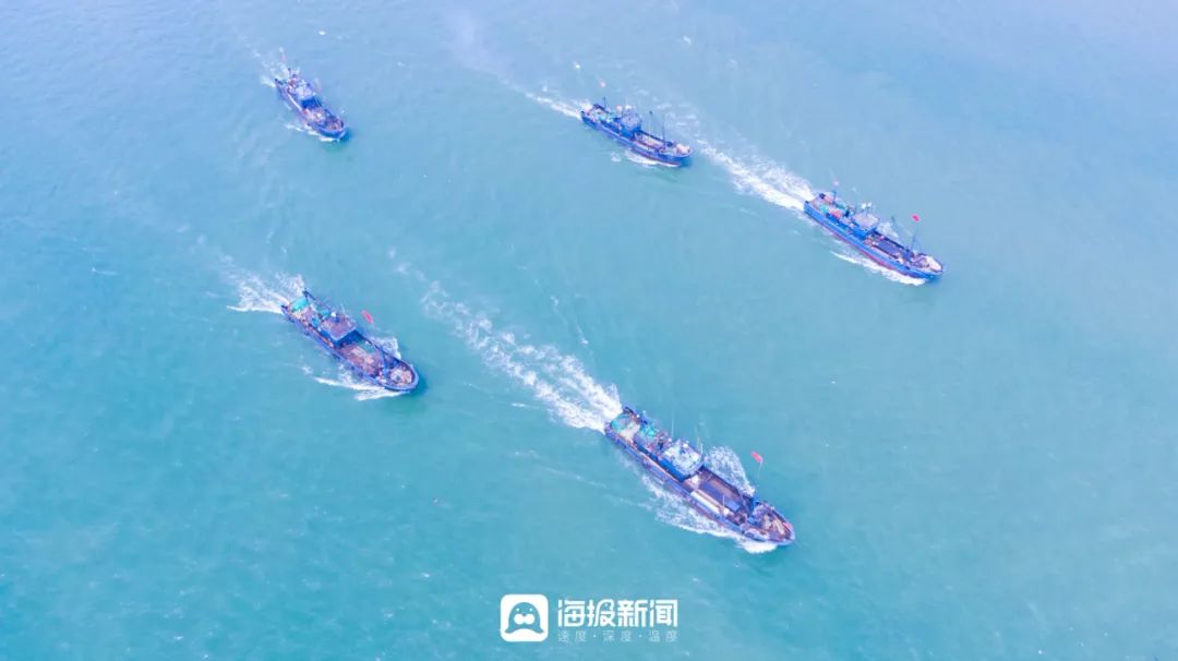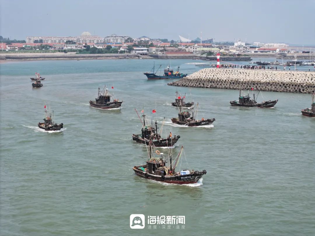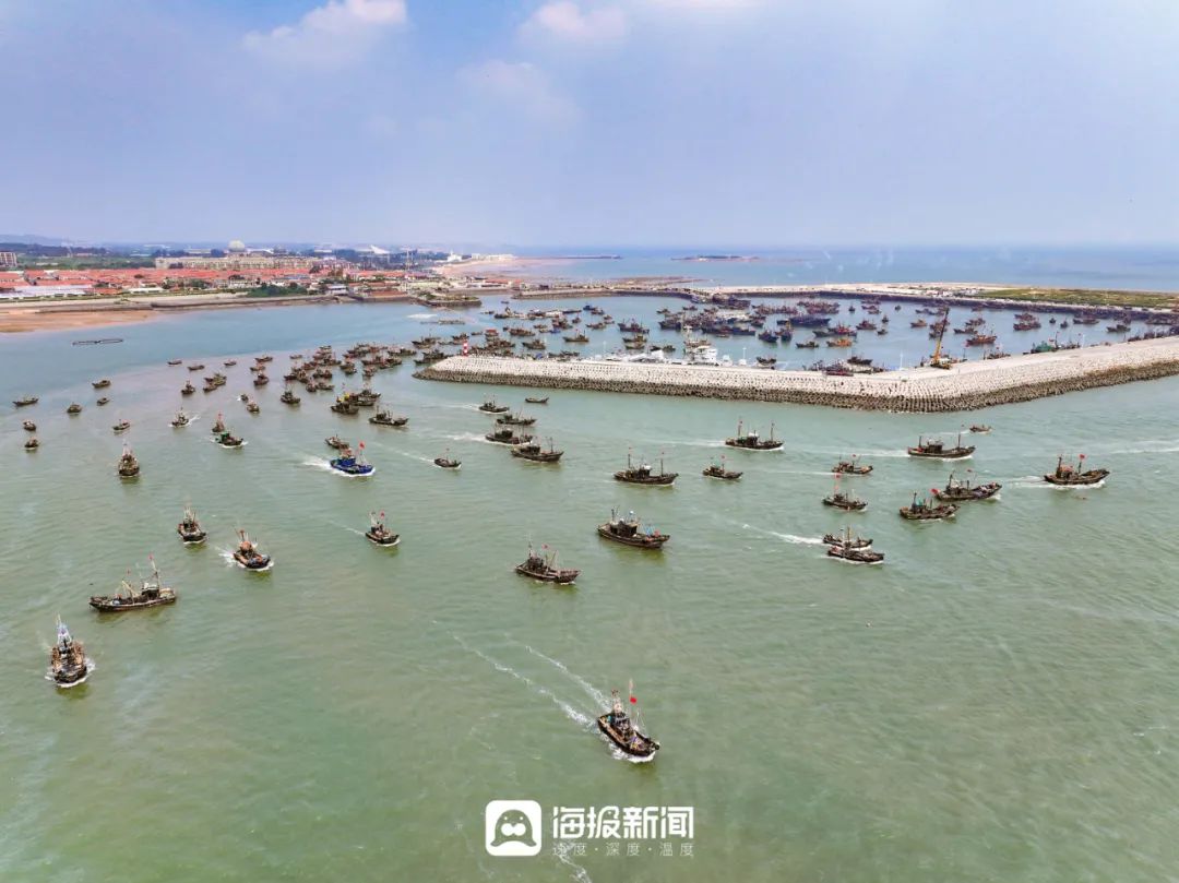 十二点整,伏季休渔期正式结束。渔船拔锚起航,一艘接着一艘竞相出海,海面再次热闹起来,渔民们都带着丰收的期盼,开启新一轮的耕海征程。