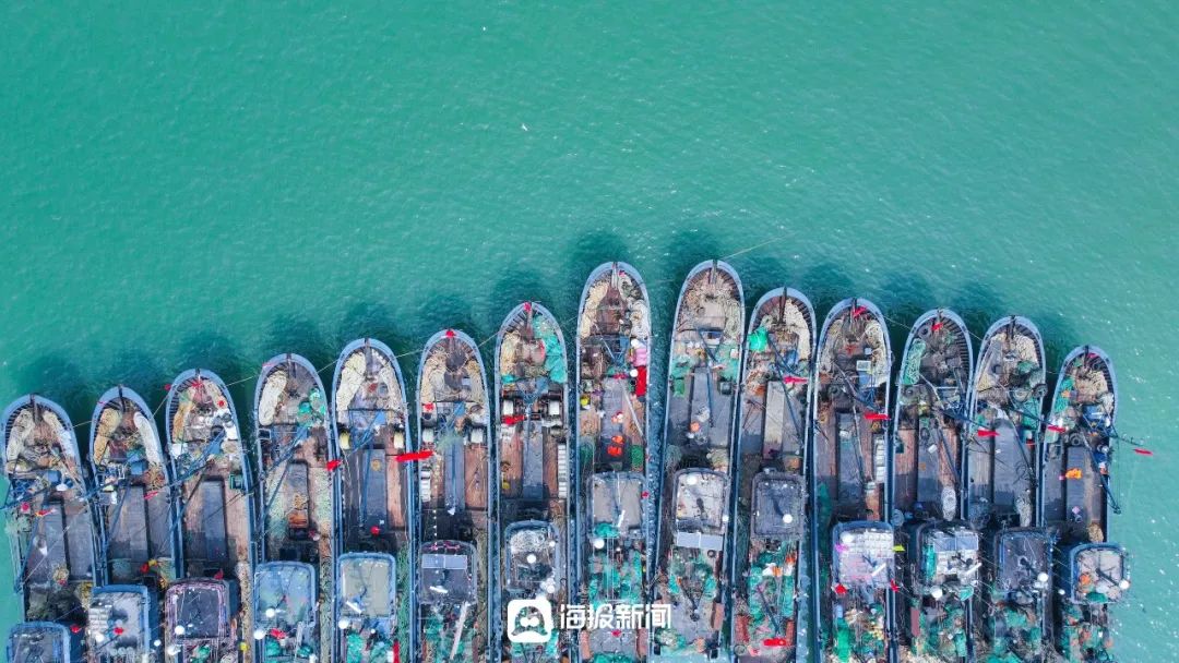 渔民们正忙碌着检修渔船、添置各种渔具、加油、加冰……为开海秋捕做好准备工作。渔港上一片繁忙景象,数百艘渔船整装待发,船头上红旗招展,摇钱树随风摇摆,只等开渔令起。