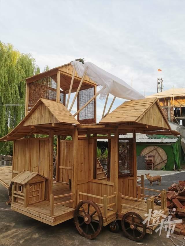 周远青说,目前莲花楼已经完成80%的工序,后续只剩下油漆和室内摆件装饰,接下来,还准备用铁丝将楼前的4匹骏马也制作出来。虽然还没完工,慕名前来打卡的人已是络绎不绝,不少网友也发来私信和留言想来看一看。她说,在完工之后会将莲花楼拉到室外的草坪上,供大家拍照打卡,体验一把剧中的“房车”生活。