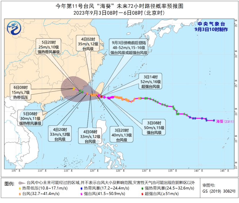台风“海葵”未来72小时路径概率预报图。图源中央气象台