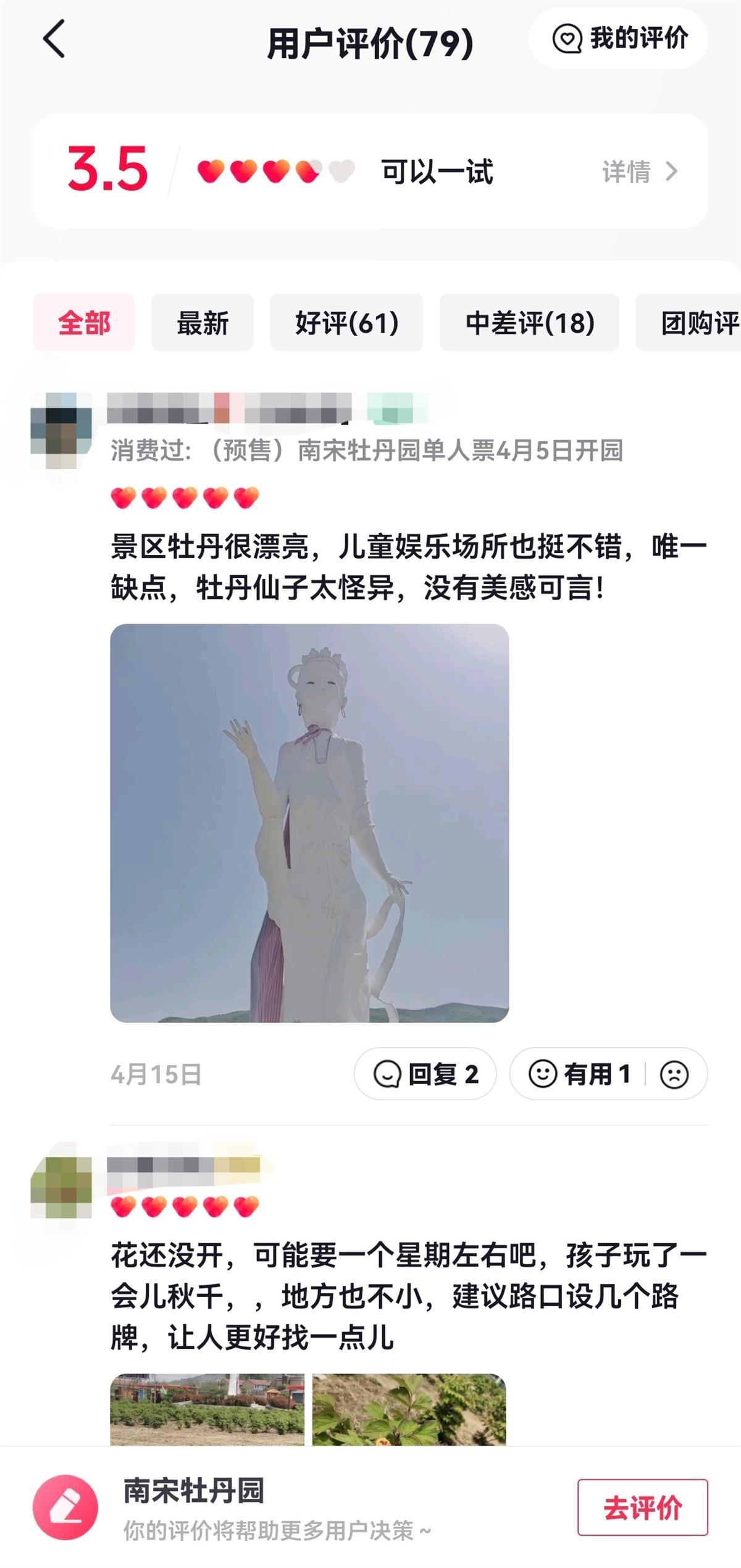 在社交网站上,大多数游客对牡丹苑给出了较好评价,“景色优美,空气清新”“牡丹很漂亮”“作为村办的是挺好的”,但不少人表示这处“牡丹仙子”雕塑并不好看。