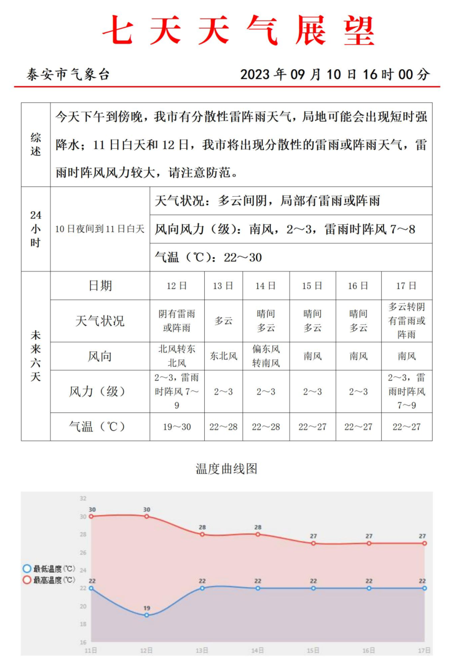 泰安七天天气展望