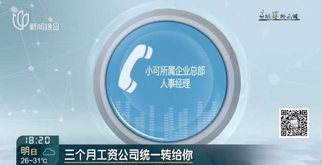 小可所属企业总部人事经理说,把产假期间工资转给公司,转给公司之后,6~8月的三个月工资公司统一转给你。
