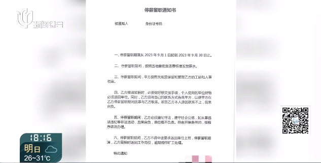 令她没想到的是,8月31日,公司作出了对她停薪留职一个月的决定,并且相关工作账号和权限,均被删除。