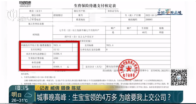 而小可则表示,今年七月,公司通知她上交生育津贴时,并没有告知她上交后还会进行核算。