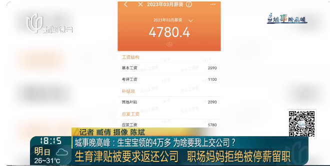 坊记介入沟通后,目前公司表示,小可无需上交生育津贴,但要退还产假工资。