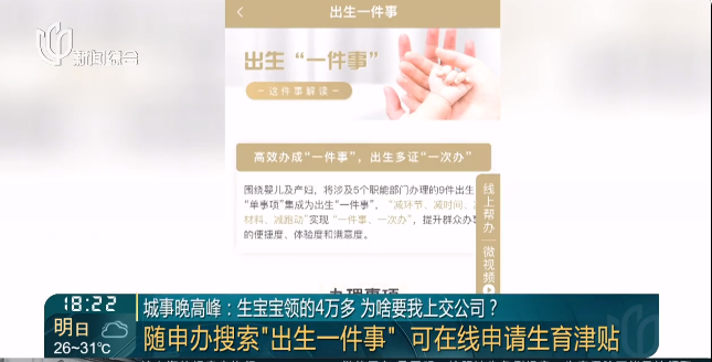 其实,上海的职场妈妈们在上海正常缴纳社保下,领取生育金也越来越方便了,一起来了解一下。打开随申办APP或者随申办小程序,选择“出生一件事”。后续新生儿宝宝和产后妈妈所要办理的相关证明都可以在线解决,比如生育津贴只要在线申请,提交相应的材料就可以一键办理啦!