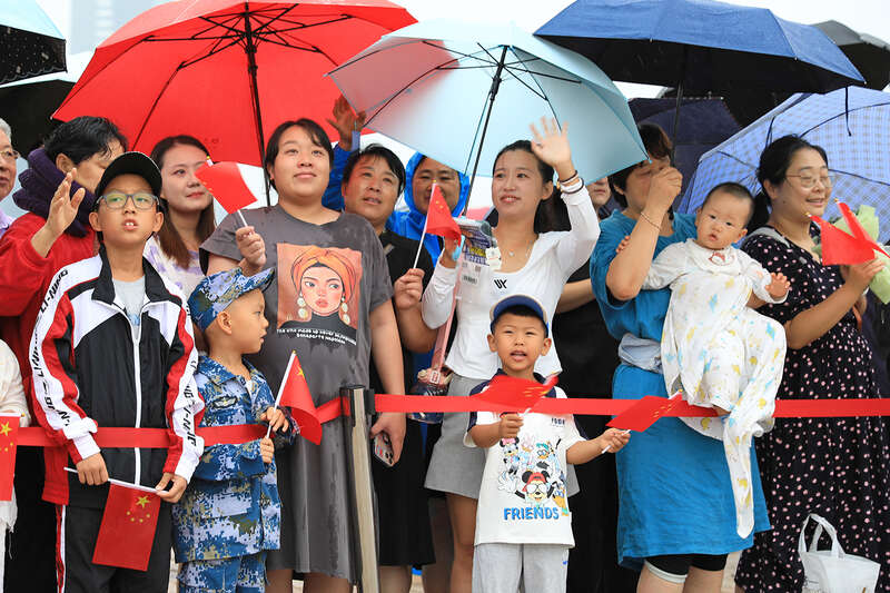 官兵家属冒雨前来送行。王远方/摄