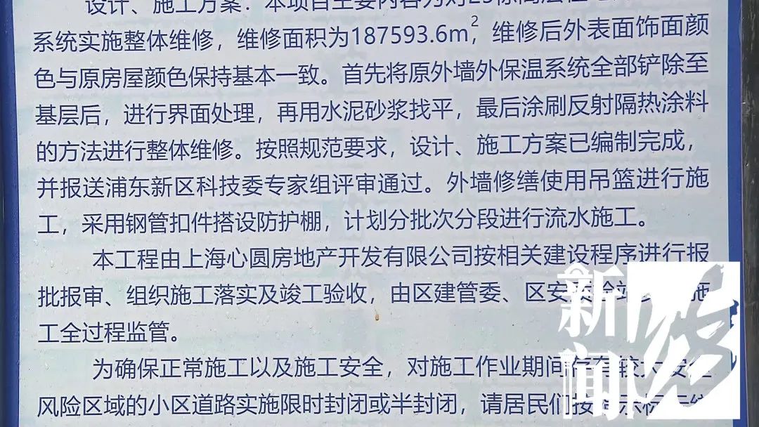 浦东新区心圆西苑小区遇到了类似问题,外墙空鼓、引发高坠的安全问题,好在去年开始已经分批维修,但“好事情”引出了新烦恼。