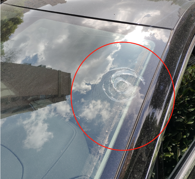 除了灰尘“漫天飞舞”,铲除的墙皮还砸坏了车辆。