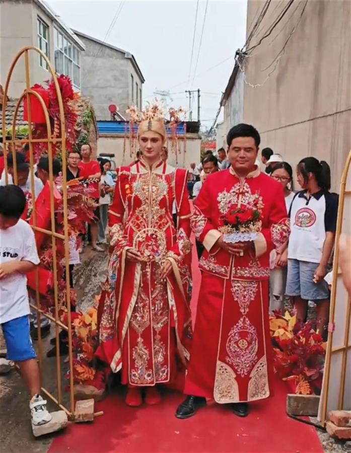 9月10日,黄康和维克朵莉亚在老家小院举行了隆重而热闹的中式婚礼,两人穿着喜庆的中式婚服缓步走上舞台,喝交杯酒,中式礼仪跪拜父母,一家人合拍全家福。亲朋好友纷纷举起手机,为他们记录下幸福时刻。黄康说,他是镇上第一个娶到外国媳妇的,婚礼当天有不少人来家里看热闹,“岳父岳母都挺开心,我岳母有些激动,都落泪了。”