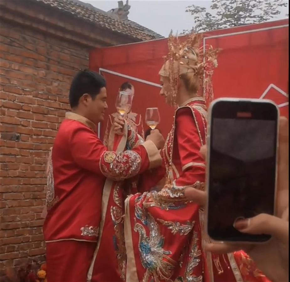 记者注意到,当天有不少参加婚礼的亲朋好友将现场视频分享到网上,有一位同村村民这样写道:“异国恋,我们村的黄康娶了一位白俄罗斯美女,百年好合,早生贵子!”