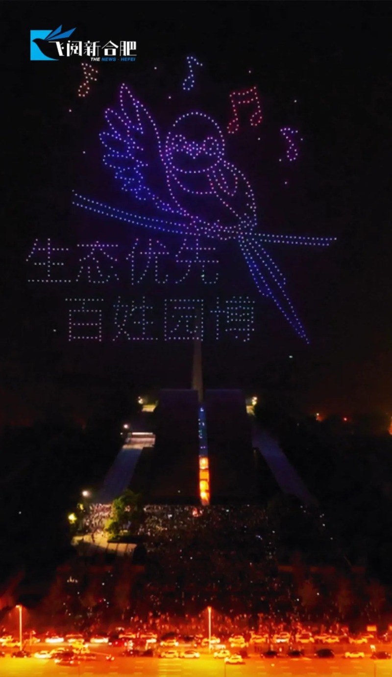 9月26日上午,第十四届中国(合肥)国际园林博览会正式开幕。当日晚上,在渡江战役纪念馆上空,一场无人机灯光秀震撼亮相。此次表演共出动5000架无人机,它们在空中交错起落,变换阵型为观众献上一场无人机光影盛宴。