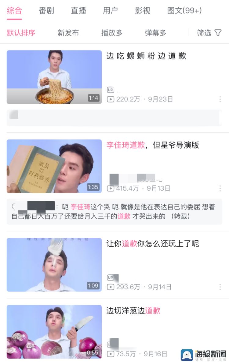哔哩哔哩上网友对李佳琦道歉视频的恶搞