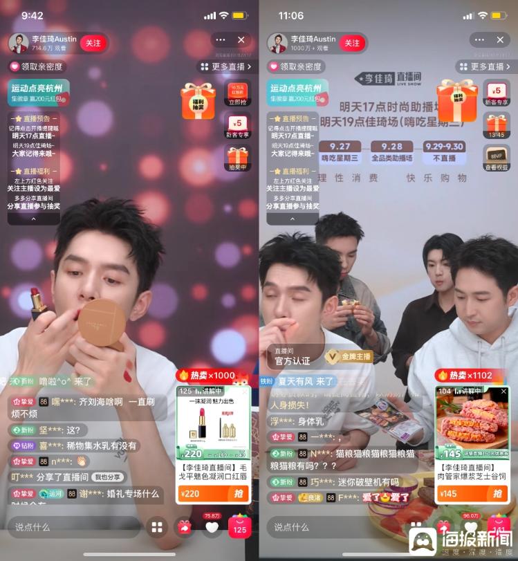 当晚11时许,海报新闻记者再次进入淘宝李佳琦直播间时,其直播间人数已突破千万,助播由一人变为三人,直播间背景也换为了9月27日至9月30日的直播预告,并打上了“理性消费,快乐购物”的标语。
