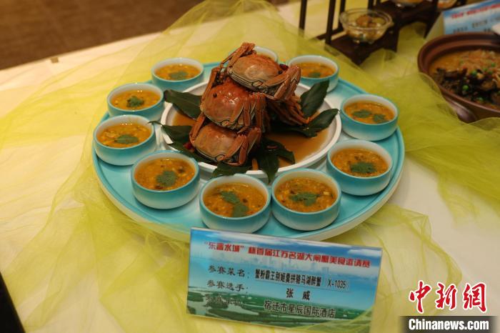 以江苏各地螃蟹为材料烹制的螃蟹美食荟萃一堂。盐城大纵湖旅游度假区供图