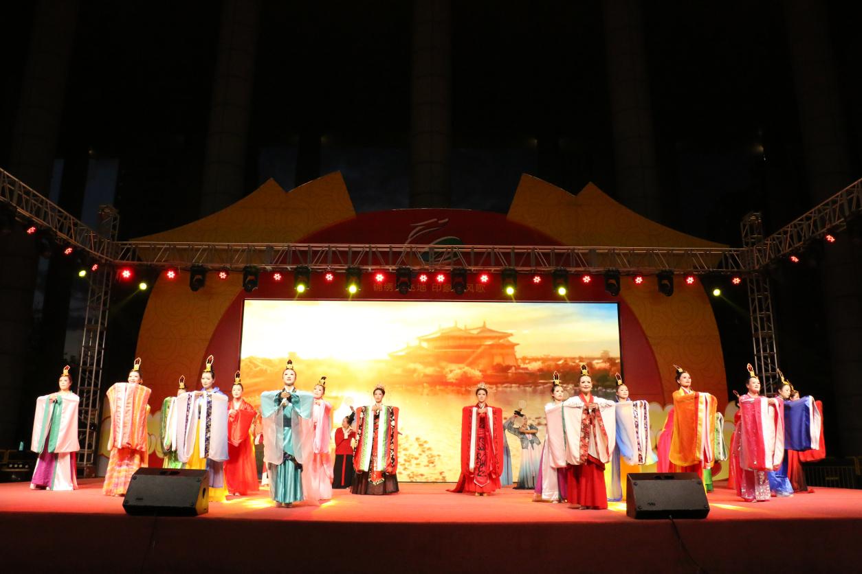 文艺演出之前,举办了绚丽的中式汉服巡游。34名汉服爱好者身着汉代传统服饰在沛县文化中心广场内展示华服之美,或婉约素雅,或雍容华丽,或儒雅脱俗,衣裾渺渺、罗裙翩翩,在唢呐的伴奏下,演绎着千年华夏服饰的诗情画意,可谓“汉舞华裳,国潮盛宴”。