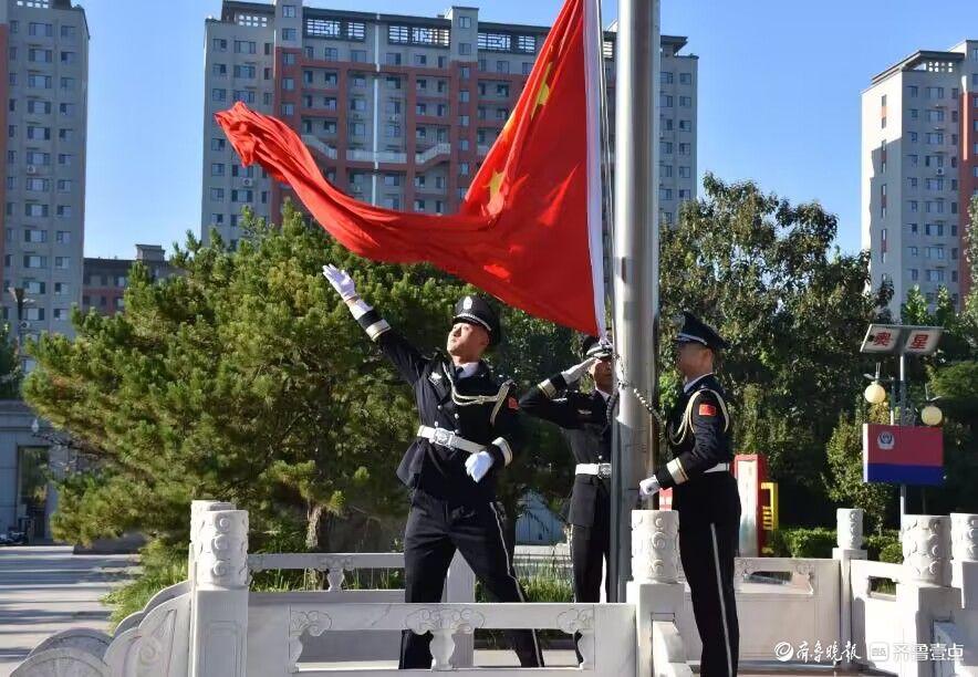 为庆祝中华人民共和国成立74周年,进一步激发全体民警、辅警爱党、爱国、爱社会主义的热情,东阿交警大队于2023年10月1日早举行“庆中秋 迎国庆”升国旗仪式。