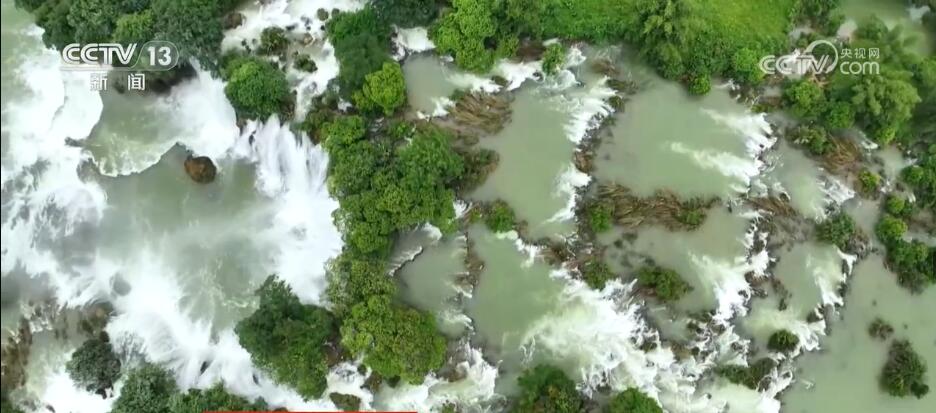 跟随镜头,现在我们来到广西崇左的德天跨国瀑布。它发源于广西的归春河,流向越南,又绕回广西,最终在德天村遇断崖形成瀑布。眼下,正值丰水期,德天跨国瀑布迎来最佳观赏季。浩浩荡荡的河水从断崖层层跌落,发出震撼的轰鸣声,激起的水花腾空而上,让人不禁感叹大自然的神奇与美妙。