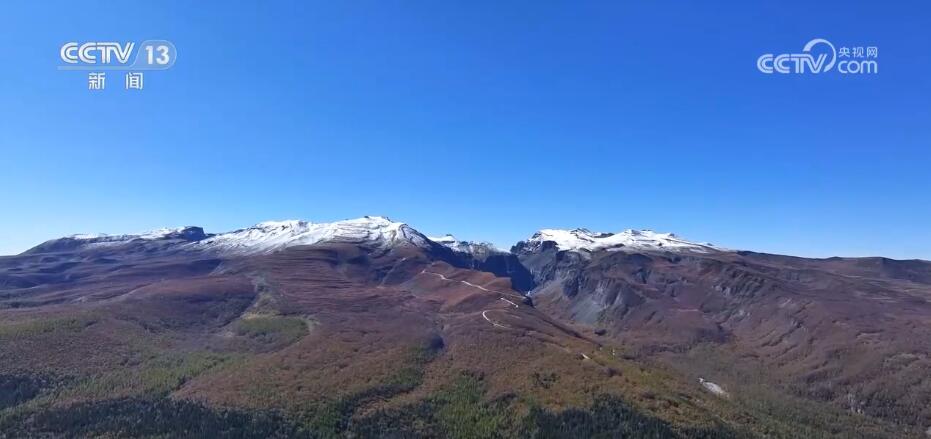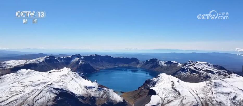 这里是位于吉林省境内的长白山景区,从空中俯瞰,山峰雄奇壮美,树木五彩斑斓。国庆期间,山顶处已银装素裹,而位于主峰的长白山天池却依旧湖光粼粼。秋日里的天池深幽静谧,让人流连忘返。长白山瀑布从悬崖处飞流直下,河水掠过群山秋叶,构成一幅动人的生态画卷。