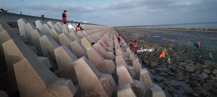 他强调,工字形的堤坝,救援队员走下去也很危险。淤泥滩如果不穿防滑的鞋子,容踩空伤到膝盖、大腿。