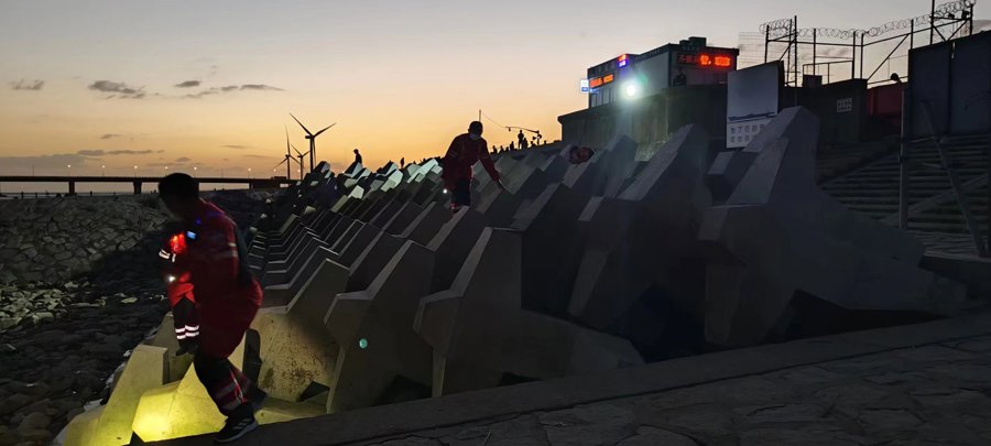 两天里,救援队都在退潮后进行搜救任务。6日晚8时,山锋救援队离开新城海滩,7日目前没有收到应急管理局的指令。