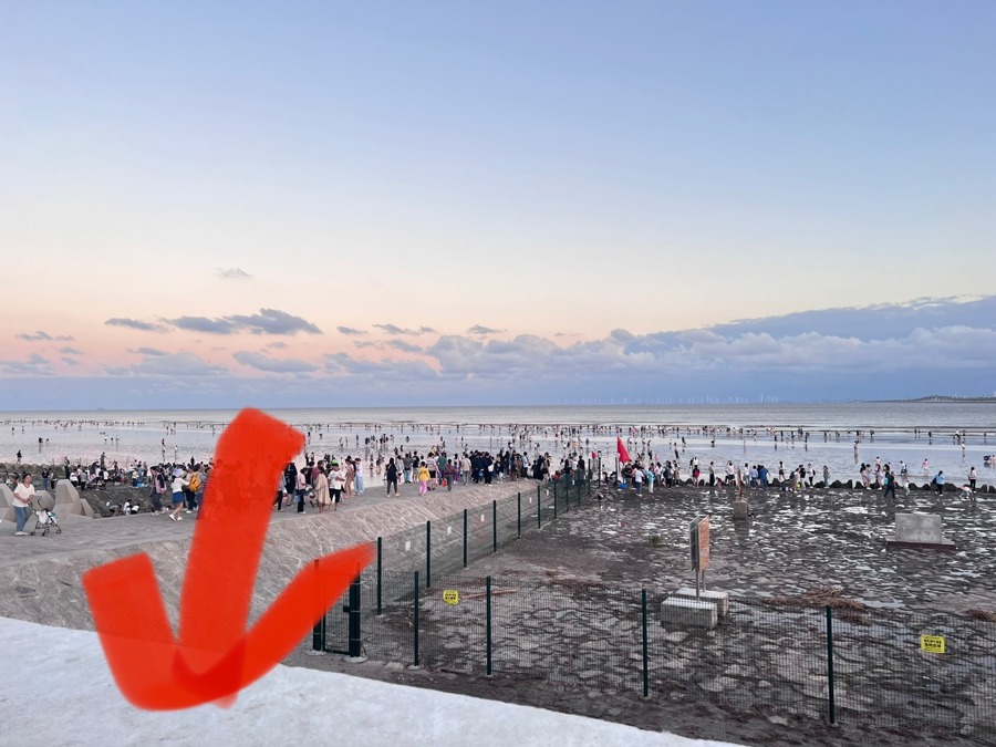 金琪看到,尽管现场有50到80米的栏杆,有救援队员把守,仍然会在海滩上看到不少游客。“有人是从小路下去的,有人是翻堤坝过去的。”这些游客很多是退潮前3到4个小时就到了海滩,等到日落,退潮后去赶海。