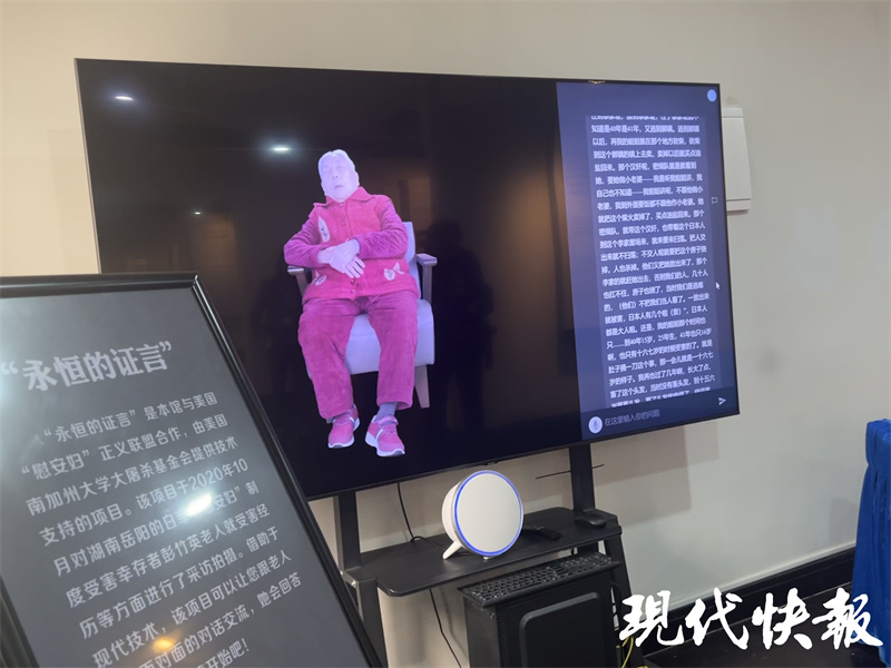 “永恒的证言”人机交互系统也于10月14日同步在陈列馆上线,该交互系统完整记录了日军“慰安妇”制度受害幸存者彭竹英老人的口述证言,通过美国南加州大学浩劫史基金会提供技术支持的人机交互三维立体问答模式,观众可以与彭竹英老人面对面“对话”,生动直观地感知日军“慰安妇”制度受害幸存者的受害史实。
