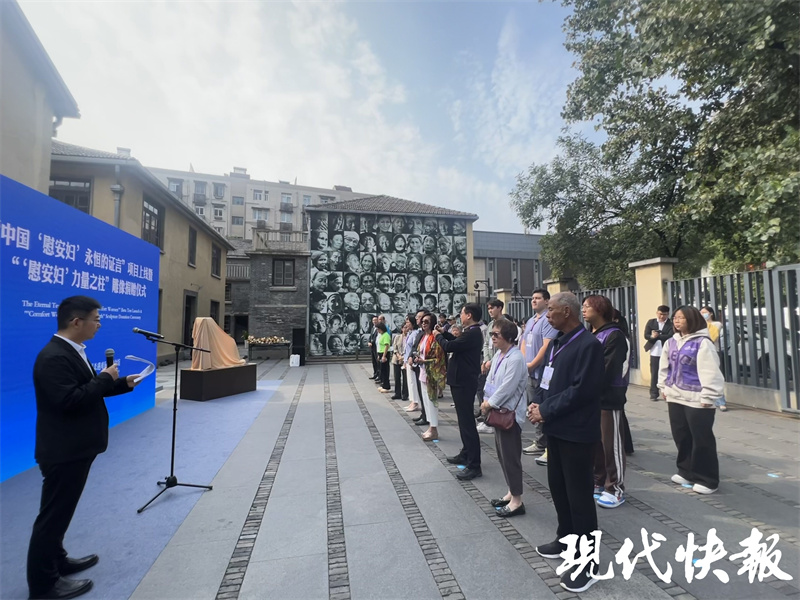 10月14日上午,侵华日军南京大屠杀遇难同胞纪念馆在分馆——南京利济巷慰安所旧址陈列馆举行新赠“慰安妇”主题雕像揭幕仪式。捐赠者美国“慰安妇”正义联盟的部分成员从美国来到南京,共同见证主题雕像的正式揭幕。