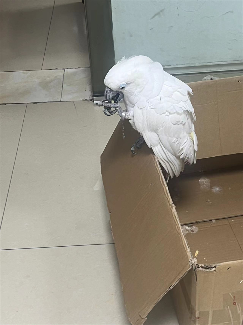 经民警现场查看,鹦鹉并无明显外伤,只是无法正常飞行。随后,警方将这只鹦鹉送往地方林业部门,经鉴定这只鹦鹉为白凤头鹦鹉。