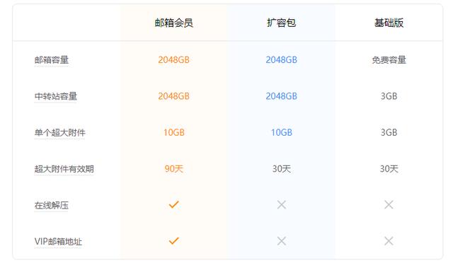 至于会员权益,可将邮箱总容量扩大到2048GB(包括文件中转站),单个附件的最大体积也可扩大到10GB,文件有效期也会延长到90天,同时还支持在线解压等VIP权限。