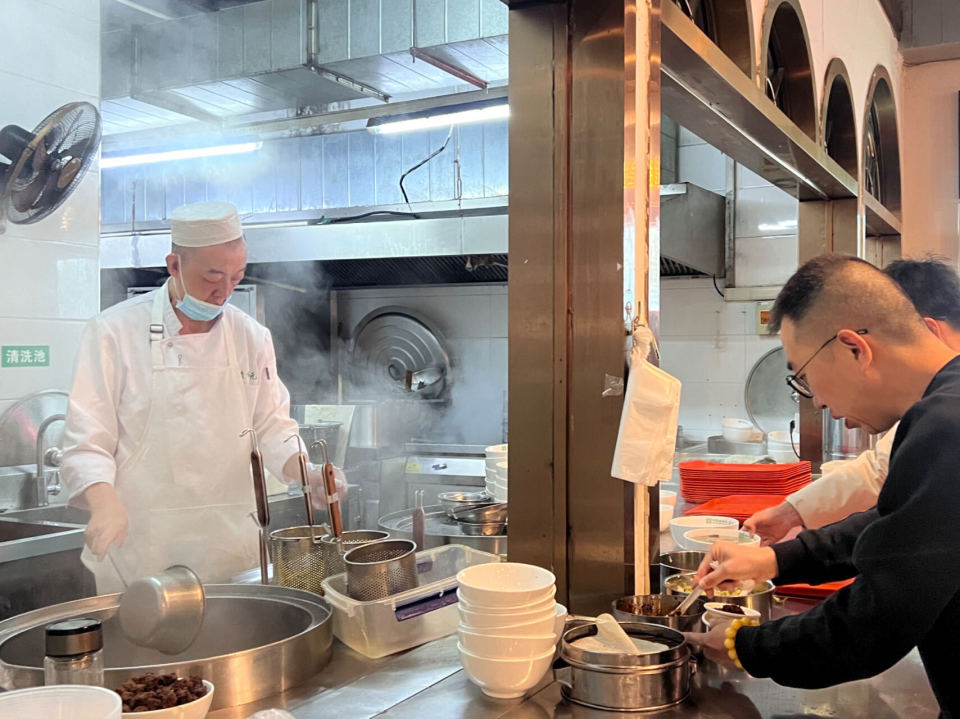 王和茂是“头脑”制作技艺的第五代非物质文化遗产传承人,这是他制作头脑的第四十个年头。“我21岁当学徒时,每天三点半就起床干活,现在设备先进了,每天五点开始和徒弟们准备食材。”王和茂一边盛“头脑”一边说道,为了将这口独特风味传承好,他坚持制作配方始终如一。“火候多一分少一秒,或者配料多一克少一毫都不行。”