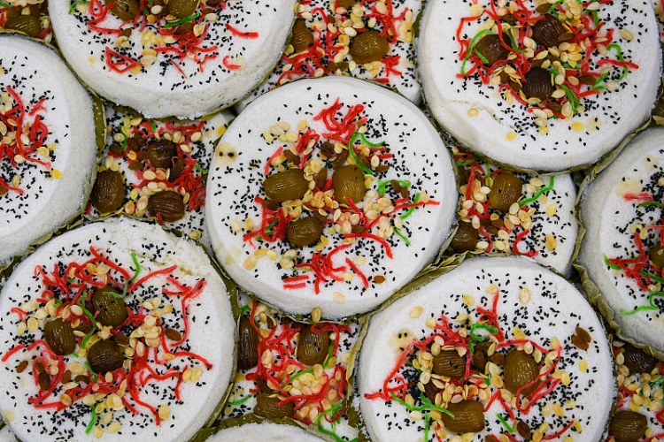 据史料记载,重阳糕又称花糕、菊糕、五色糕,制无定法,较为随意。九月九日天明时,以片糕搭儿女头额,口中念念有词,祝愿子女百事俱高,乃古人九月作糕的本意。