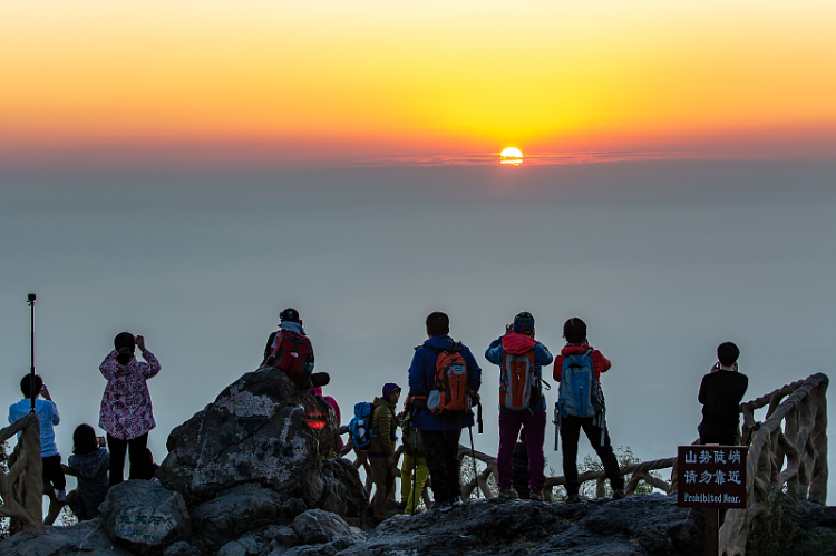 登高望远,观赏美丽的日出。图自视觉中国