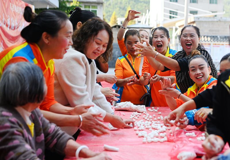 10月22日,重庆酉阳一老年文体协会为老人制作汤圆、为老人办一场文艺表演,让老人过上一个愉快的重阳节。图自视觉中国